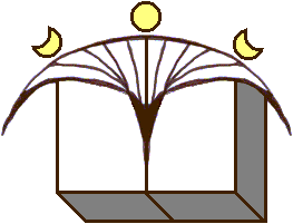 Since Ahn'Dahn is Deity of Order (Organization) and Sex, the fact that the part inside the box is part of the female (or Ah'Koi Bahnis) anatomy should be obvious to everyone. :-) But the three moons above it could either represent the waxing, full, and waning moon of Earth, or the three moons of Traipah. To me, it means the latter, as Earth doesn't really interest me that much. The weather fluxuates too much from too hot to too cold and rarely stays where I like it. Too much of it is barren, too. There are---to the best of my knowledge---no deserts hot or cold on Traipah, and definetely no polar ice. Furthermore, this planet is crooked on its axis and its Humans measure time oddly. But I'll stop there and leave that for another page maybe.