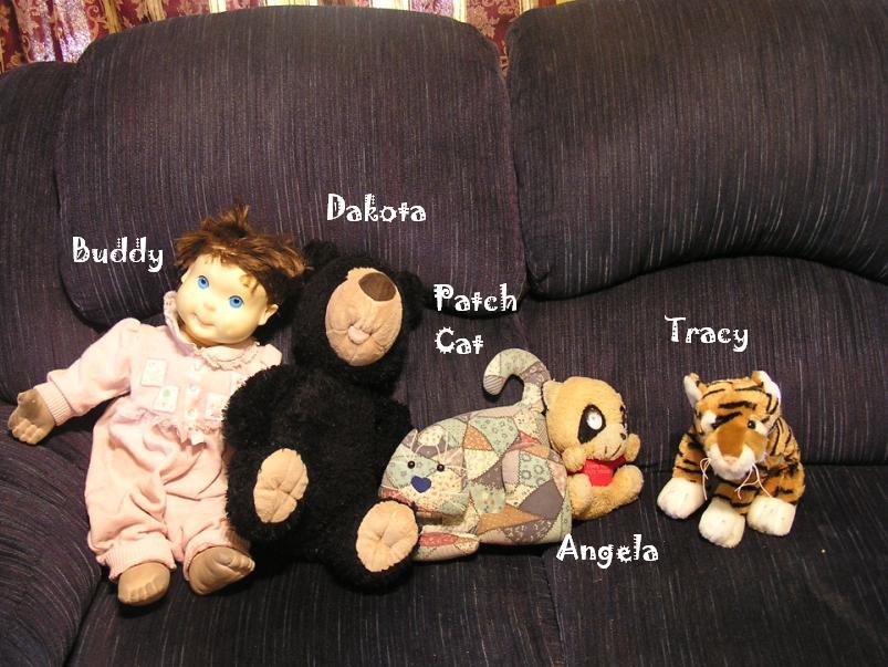 Tha "family"!Buddy Watchin TVDakota eatin marshmallowsDakota sharing wif AngelaPredator... RAWR!Tracy and Patch Cat!