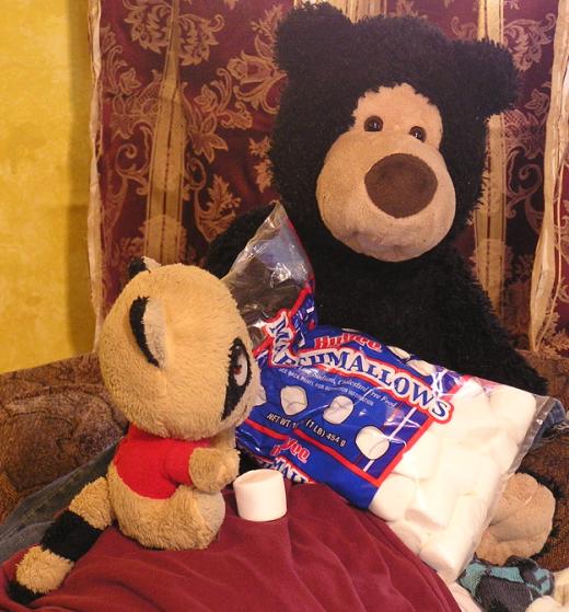 Tha "family"!Buddy Watchin TVDakota eatin marshmallowsDakota sharing wif AngelaPredator... RAWR!Tracy and Patch Cat!