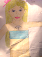 Molly Elizabeth Arts - My inner child. If she had her own body, she'd be 7 with blonde hair and blue eyes. She's a fun, silly child, and because she, too, is in Alignment with me, she is not an ordinary child... you share thoughts with adults all the time, you're bound to be a bit unusual. So because of her, I'm into age play. Her Discordian name is Princess Sunflower. Here's another picture.